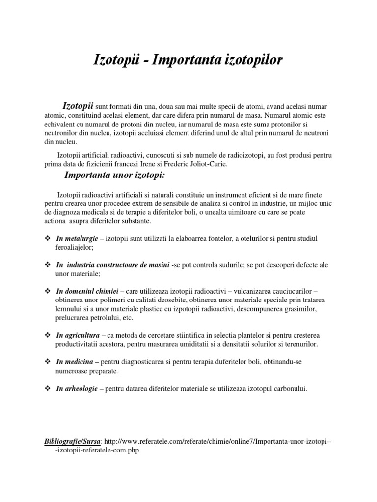 Puteti gasi foarte multe referate accesand categoriile din partea dreapta despre izotopilor.