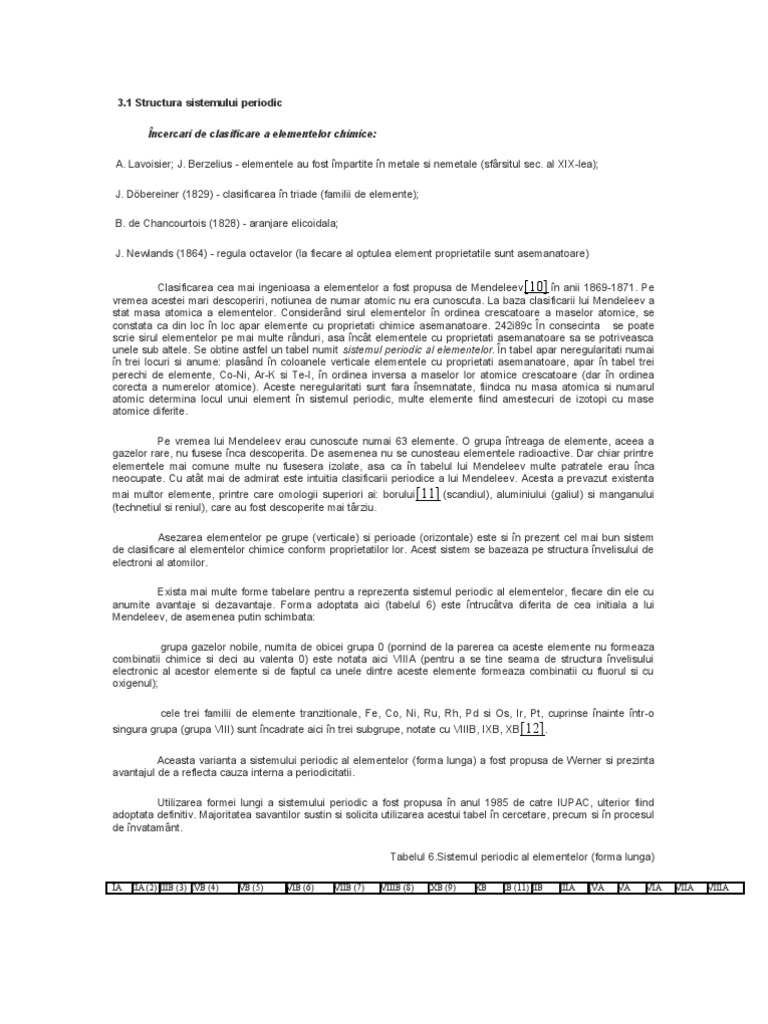 Clasificare a elementelor chimice bazata pe legea periodicitatii. Există 18 grupe în tabelul periodic standard. tabelul periodic a fost realizat în strânsa corelaţie cu structura învelişului electronic al elementelor;